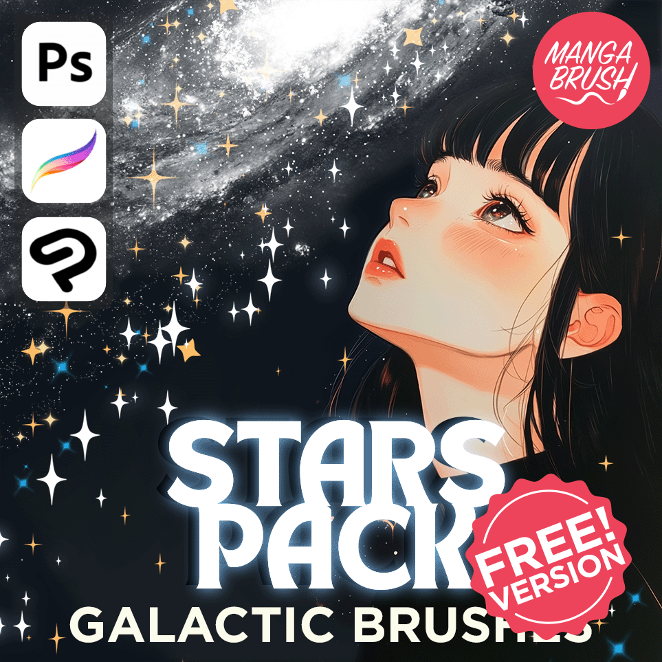 12 FREE beautiful MANGA BRUSH Galactic Brushes! These night sky brushes are compatible with Procreate, Clip Studio Paint, and Photoshop!